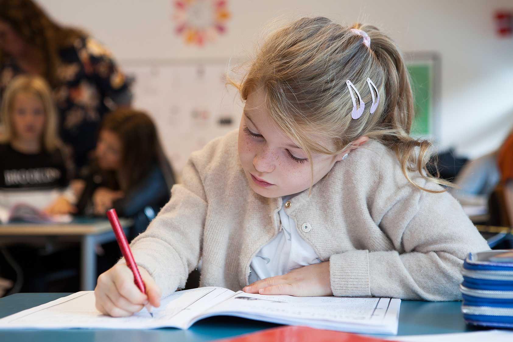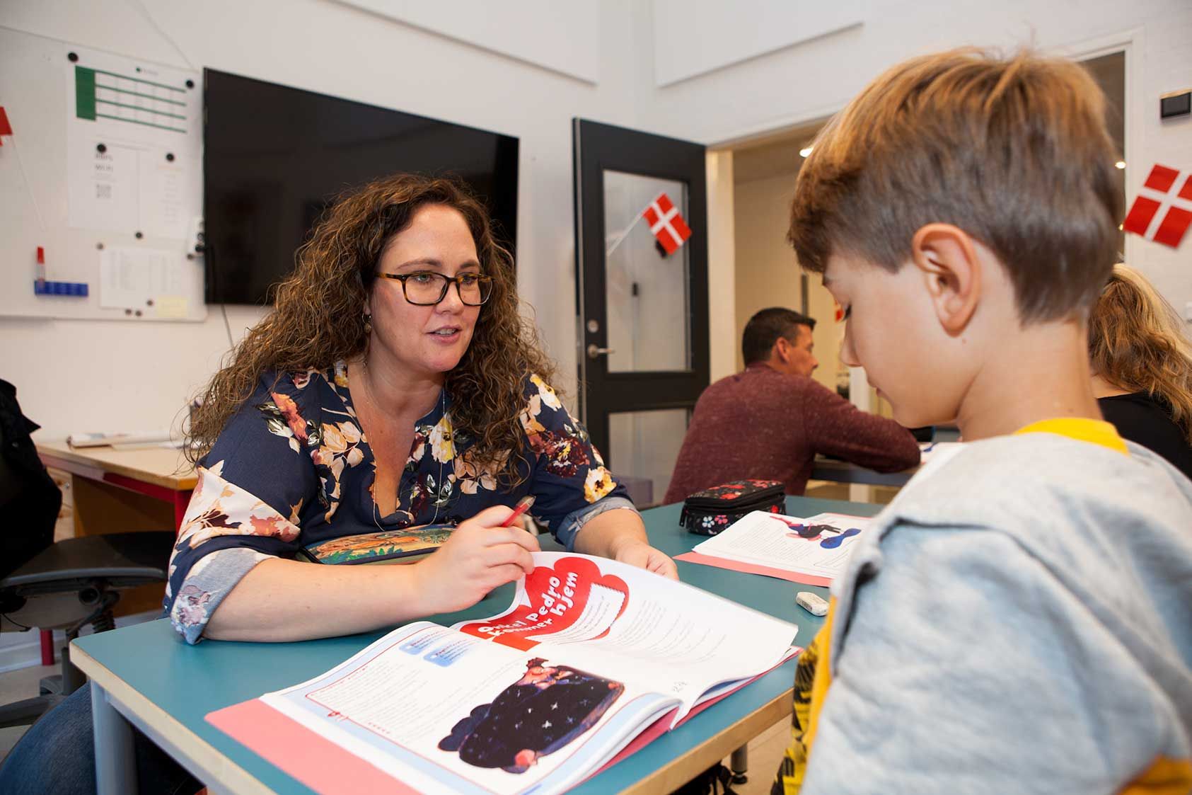 Undervisningsministeriets ”Fælles mål” følges helt på samtlige klassetrin.